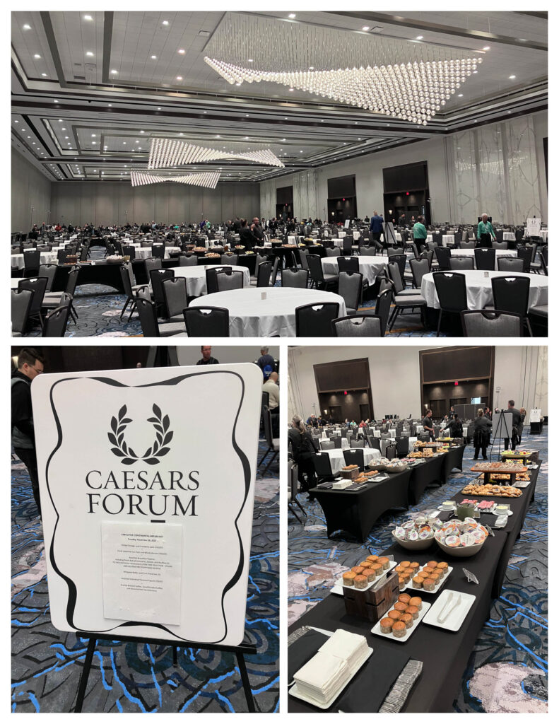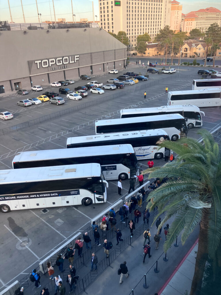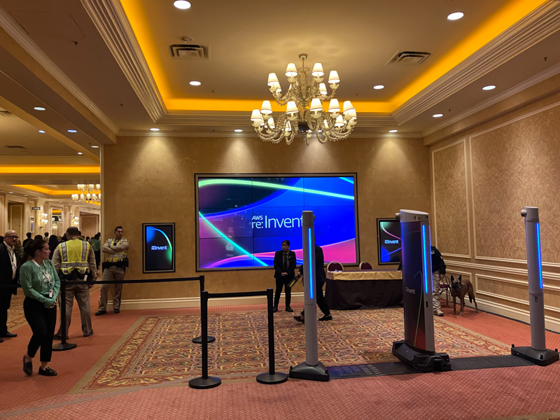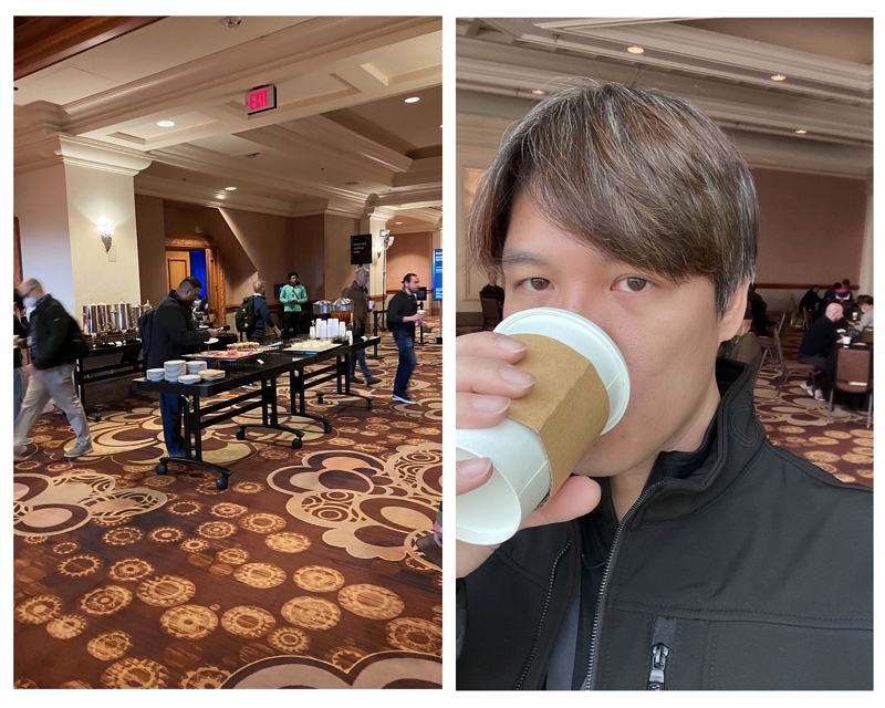 第一天早上沒提供早餐,所以8點左右才出門,昨天有先探路,所以知道我住的飯店經由Caesars Forum(CF)可以過去The Venetian。進去前要安檢,並檢查包包,但之後在不同會場透過巴士移動,就不用再過安檢。