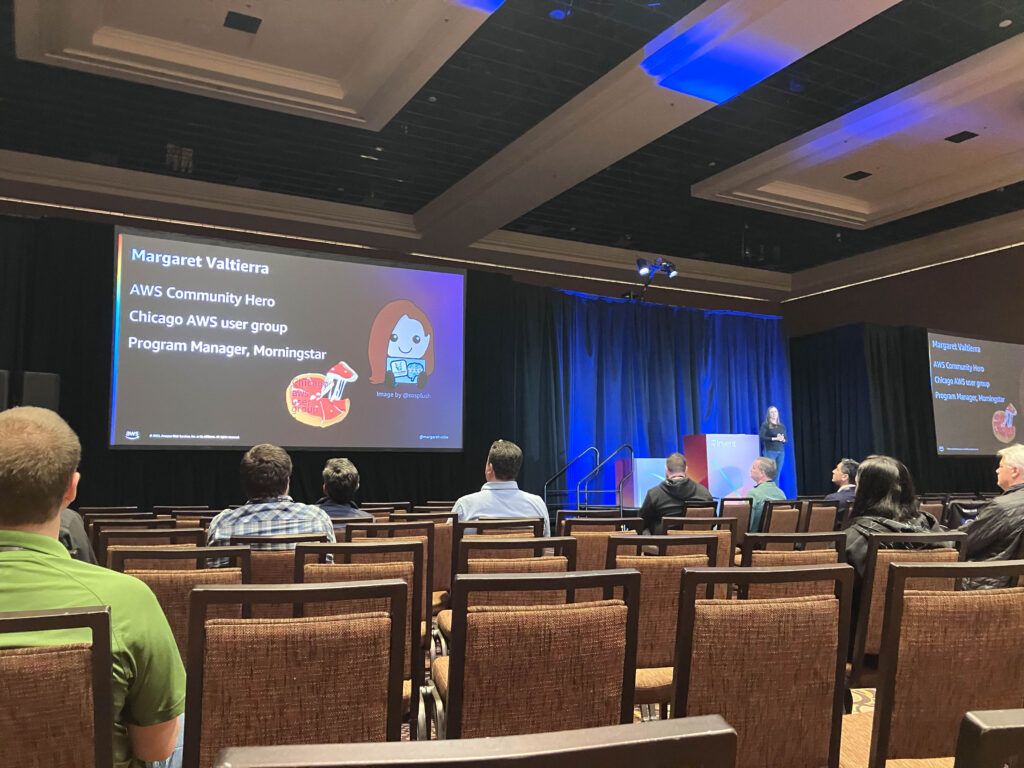 接著要趕往MB,這時大家都往主會場的EXPO Welcome reception,所以MB人潮已不多,難怪我可以預約到位置,但其實空位還很多。講師也來自芝加哥,並且主持當地的AWS User Group。