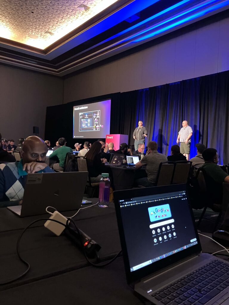 Builder session跟Wordshop有點像,不同的是在Builder session,我們一桌是一個組,每一組都有一個講師在指導。也是先講解完架構後,我們再實際操作,但時間比較短,只有一個小時。