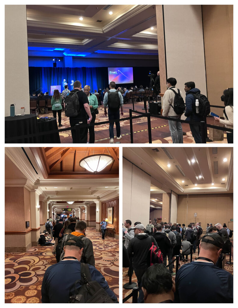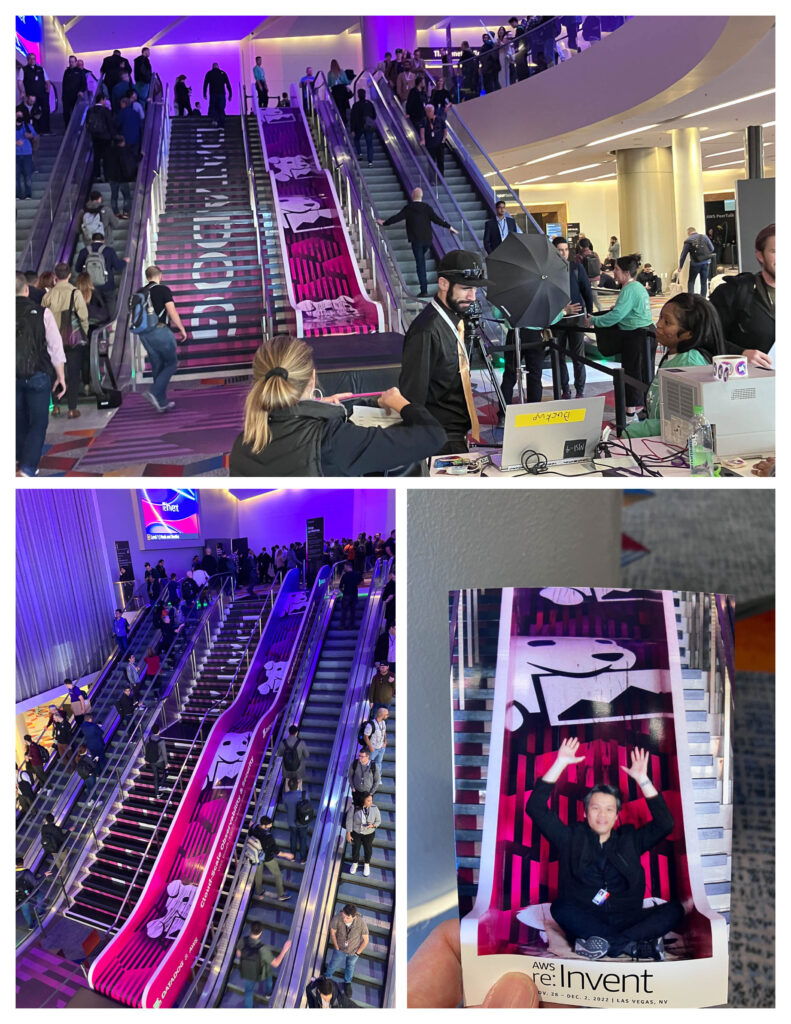 我覺得這次研討會,收穫最多的就是與人交談,聊聊大家遇到的挑戰跟解決的方式,可以學習到很多別人的經驗,也可以建立人脈。這是來自世界各地高手雲集的雲端盛會,會遇到來自不同領域跟知名公司的專家,多多跟身邊的人交談,例如排隊的時候、用餐的時候、搭巴士的時候,都是很棒的時機。如果不好意思主動攀談,也可以利用re:Invnet APP的PeerTalk預約會談,在會前就跟對方建立連結,等到了會場再約出來見面。