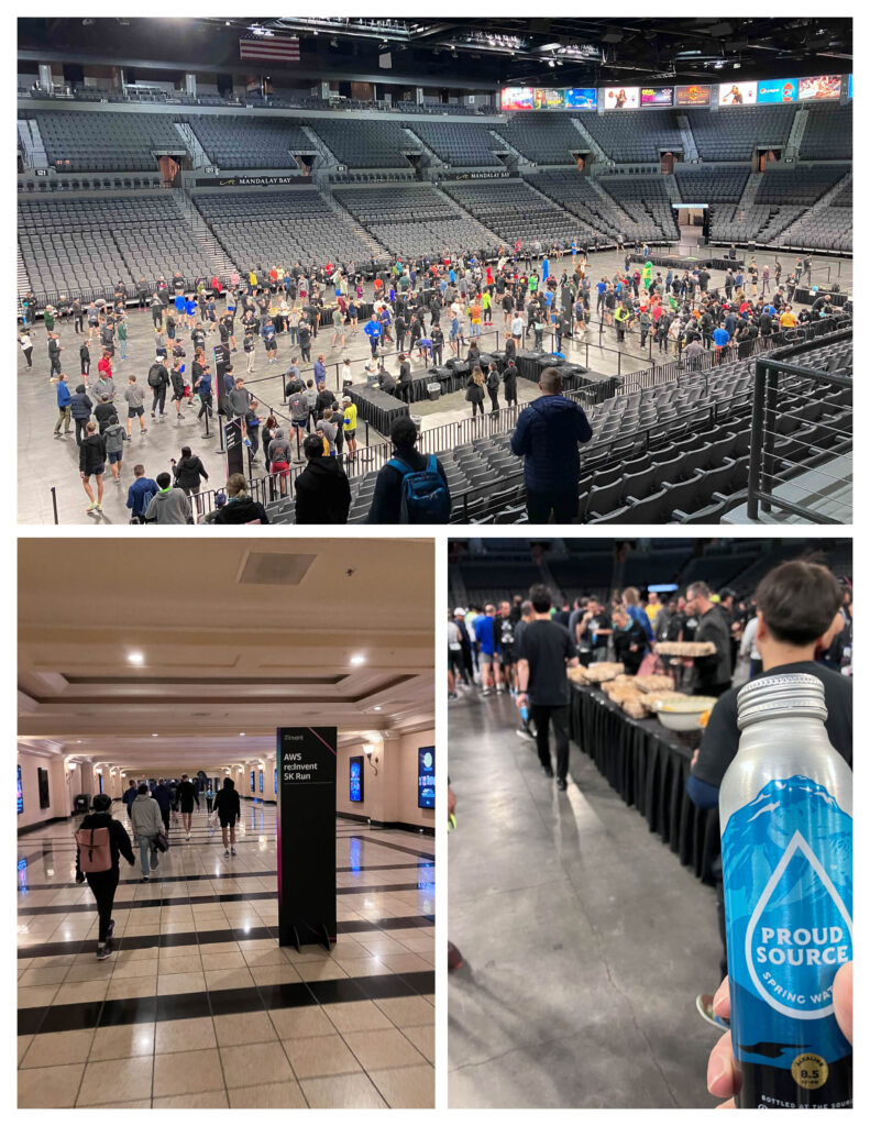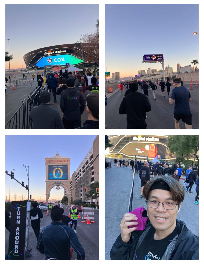 AWS re:Invent 5K是在MB的Michelob Ultra Arena集合,6:30AM開跑。路線很簡單,就是沿著大街平行的Frank Sinatra Dr.,跑到Bellagio後直線折返。