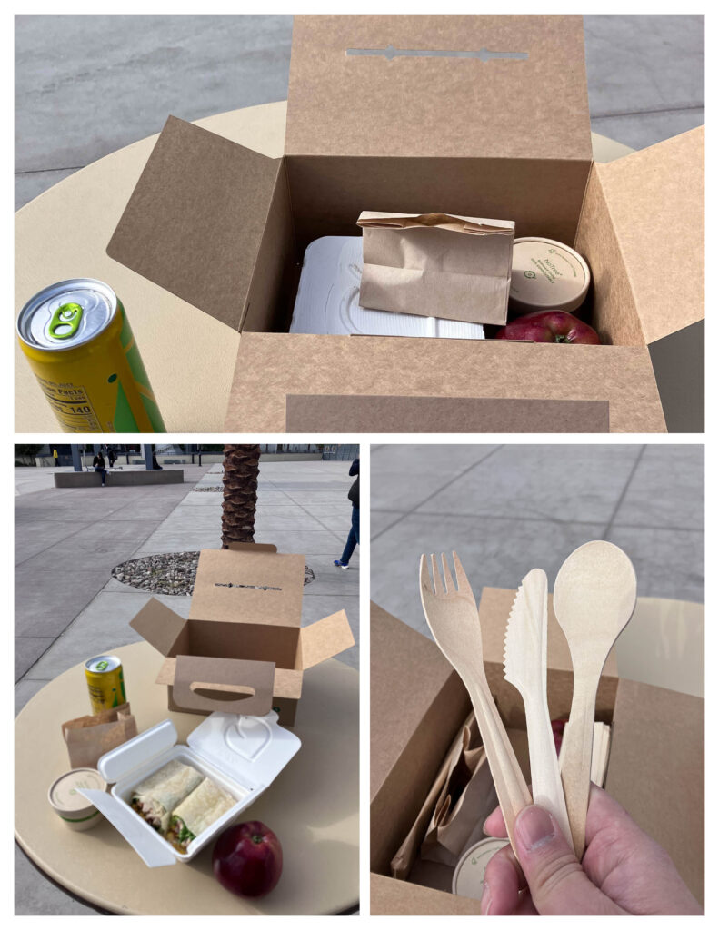 中午熱食又是印度食物,所以我選擇了外帶便當,在戶外用餐。餐盒整個很環保,連餐具都是木製的。