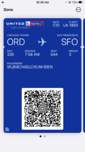 取得KTN後,就可以在訂機票時輸入KTN,當你Check-In後,機票上就會有TSA Pre的字樣在上方。