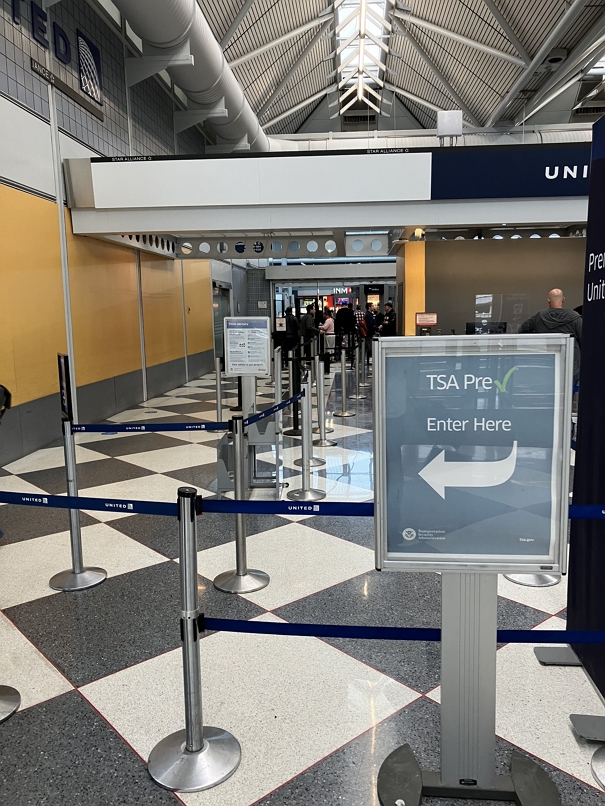 到機場掛完行李後,找到TSA Pre的檢查站,入口處會有人員察看你的機票上有沒有TSA Pre的字樣。