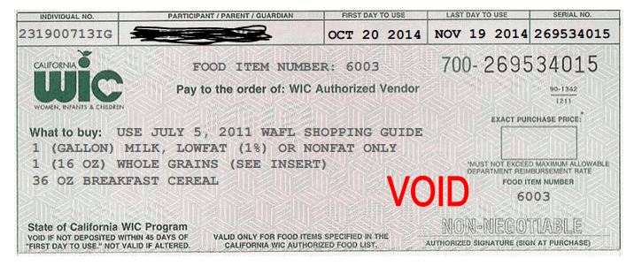 補助的對象是懷孕婦女、嬰兒與5歲以下的兒童,WIC每個月會發給食物劵,提供營養補助。食物劵上有姓名、有效期限、最高補助金額、食物種類等。