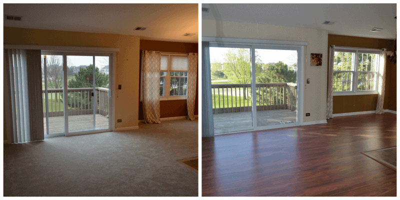 我們在美國買的是新房子,基本配備是地毯,當初建商提供木地板升級,費用需加收$8,000元,我們決定等地毯耗損後再更換成木地板。為了要開始小孩的如廁訓練,決定著手更換成木地板。與原先建商合作的地板公司再次詢價後,費用竟比之前高出一倍之多,原來是要收取拆棄地毯的費用。