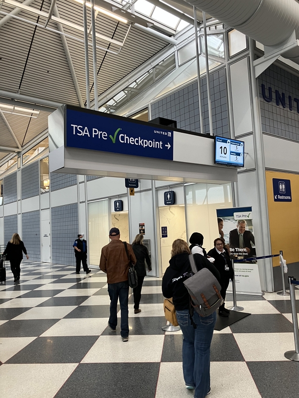 到機場掛完行李後,找到TSA Pre的檢查站,入口處會有人員察看你的機票上有沒有TSA Pre的字樣。