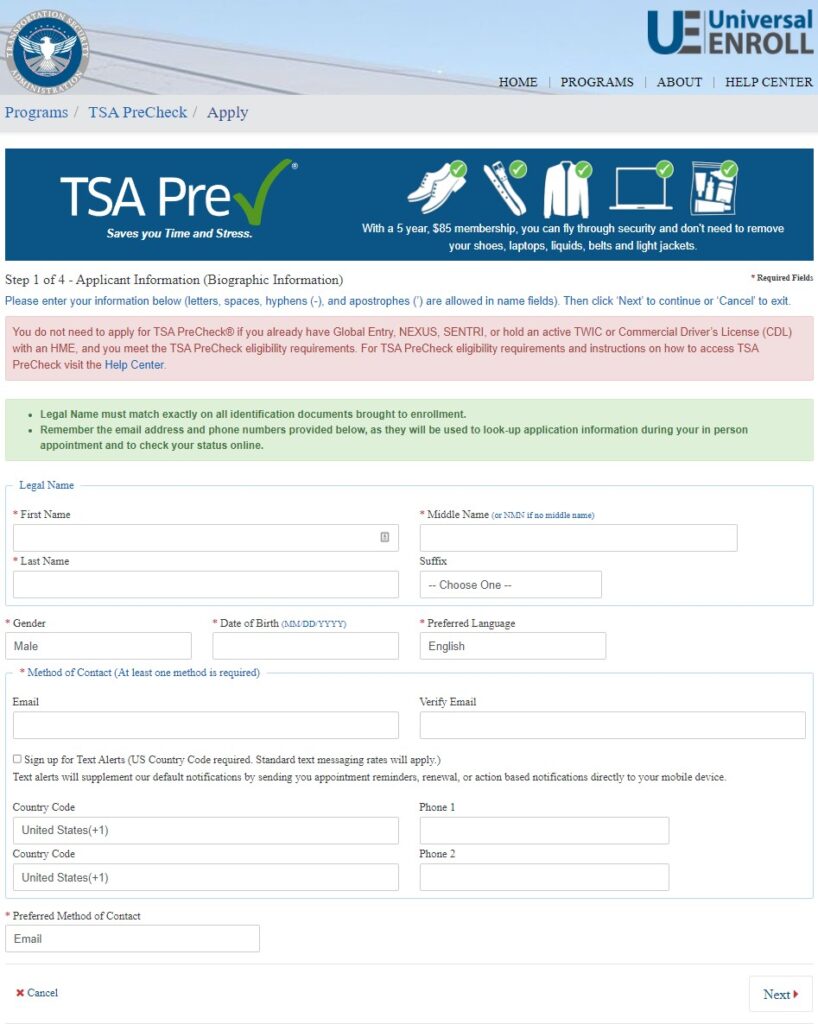 首先到TSA PreCheck® | Transportation Security Administration,點選Apply Now開始填寫申請表格。