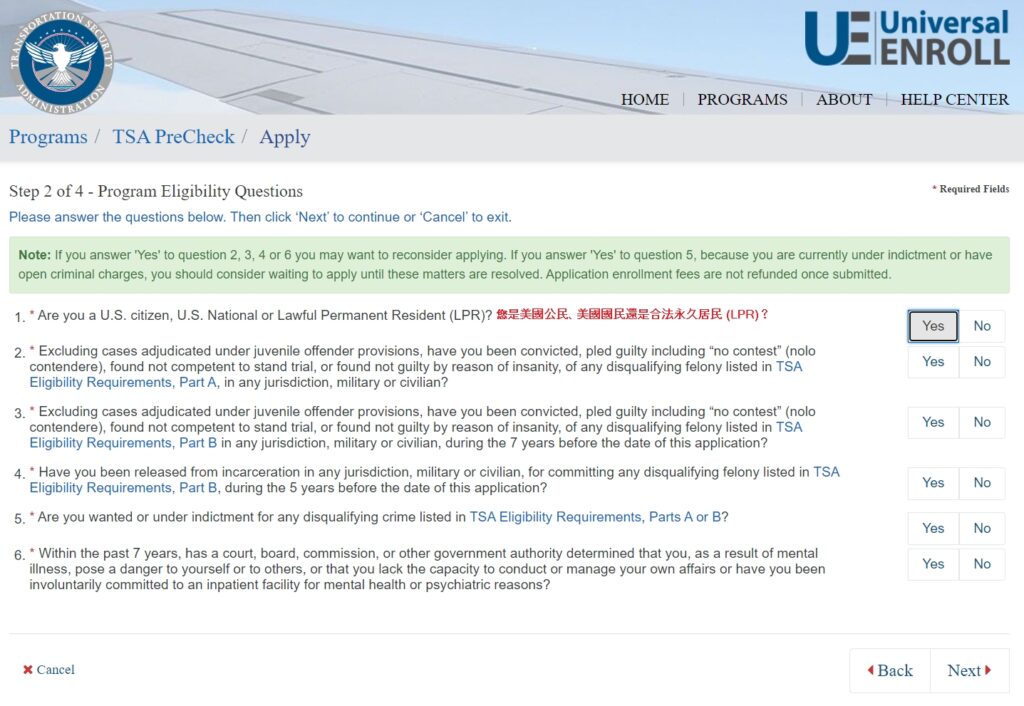TSA PreCheck申請資格: 美國公民、美國國民與合法永久居民(綠卡)