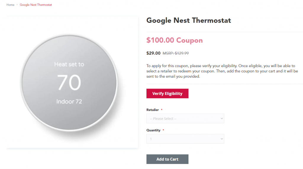 每個州的電力公司補助的方案並不一樣,智能恆溫器的廠牌也蠻多的,例如Honeywell Home Smart Color、ecobee、Google Nest…等。我後來選擇Google Nest Thermostat,因為扣掉補助後只要付$29,且我需要的功能都有了。如果您家中有很多房間,可以考慮Google Nest Learning Thermostat加上Nest Temperature Sensor。